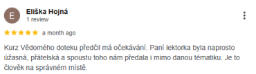 Jsem úplně nadšená a těším se na další kurzy, nejsem s touto TOP paní lektorkou.