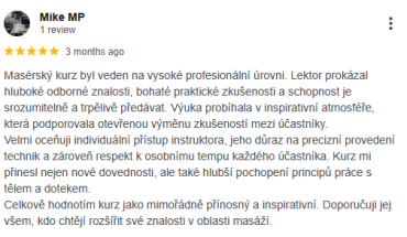 Celkově hodnotím kurz jako mimořádně přínosný a inspirativní. Doporučuji jej všem, kdo chtějí rozšířit své znalosti v oblasti masáží.
