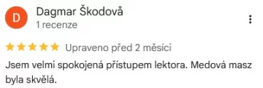 Jsem velmi spokojená přístupem lektora. Medová masz byla skvělá.